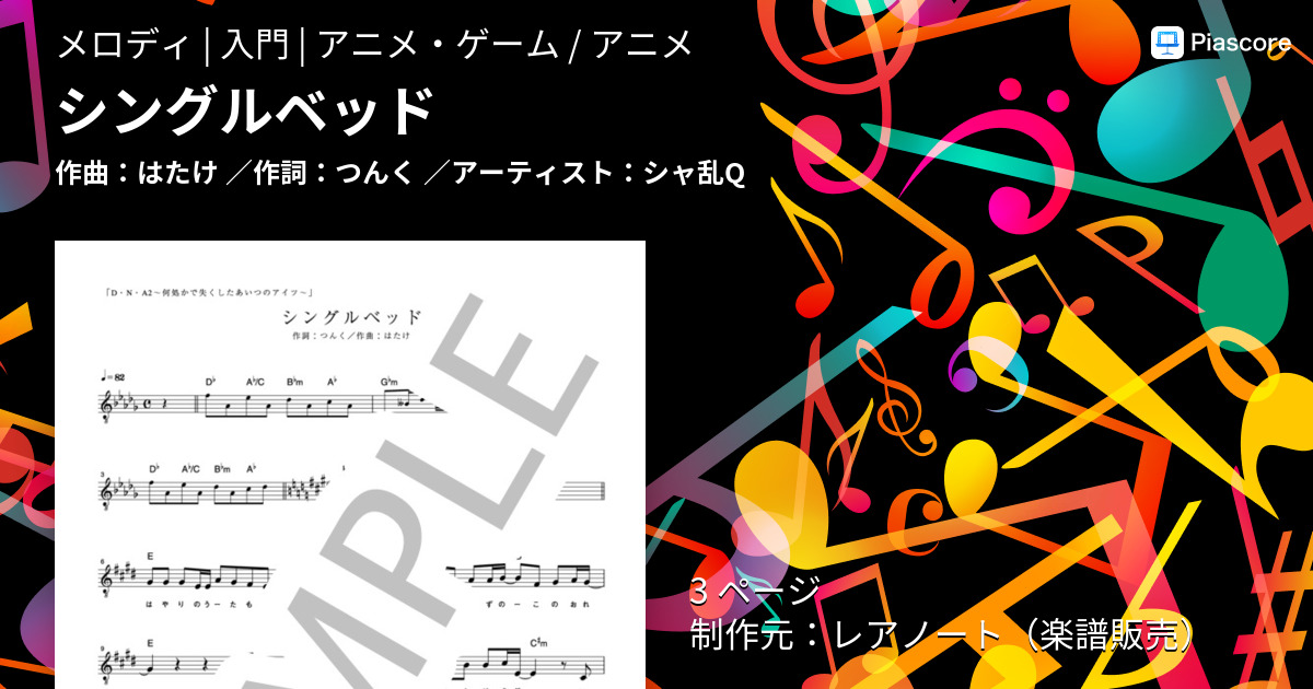 楽譜 シングルベッド シャ乱q メロディ 入門 Piascore 楽譜ストア